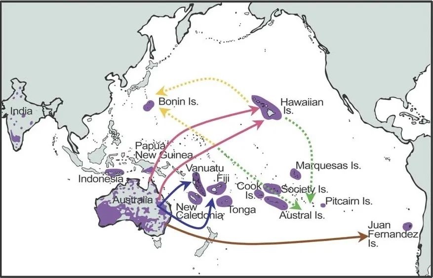 檀香種類的分布與傳播(引自美國植物學(xué)報(bào))