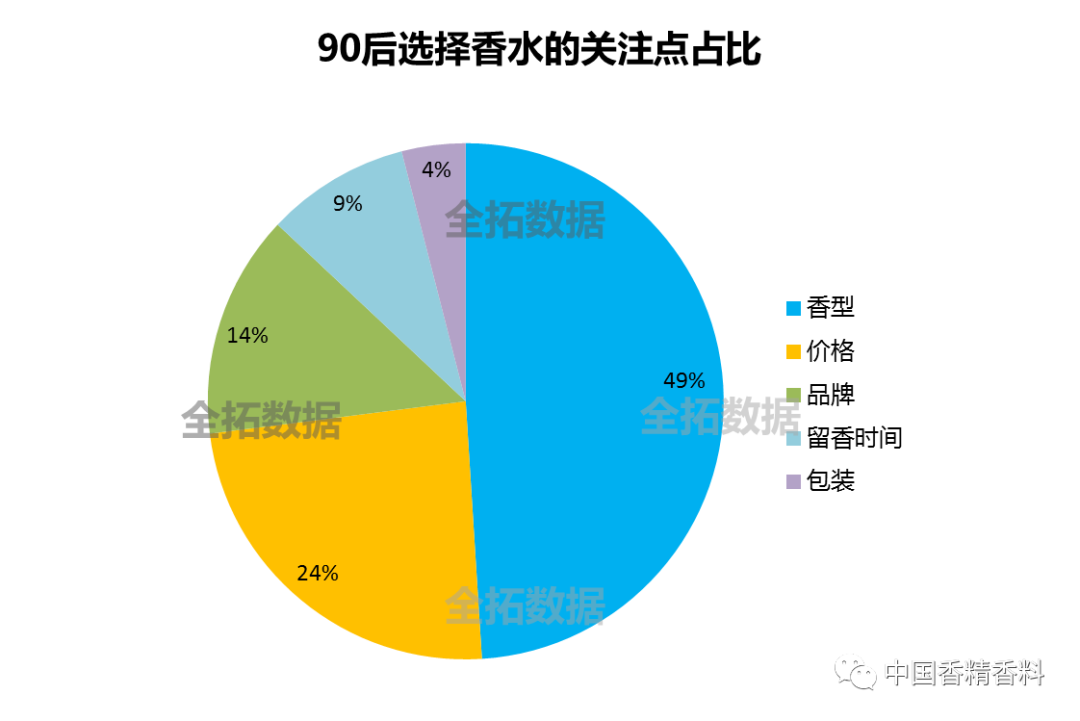 全拓?cái)?shù)據(jù)通過調(diào)查發(fā)現(xiàn),49%的消費(fèi)者表示香味是其選擇該香水產(chǎn)品的主要原因,相比國(guó)外香水品牌,國(guó)貨品牌更了解嗅覺經(jīng)濟(jì)下中國(guó)消費(fèi)者對(duì)于中國(guó)氣味的訴求。同時(shí),14%的消費(fèi)者會(huì)選擇令他們心情愉悅的品牌,例如品牌代言人是自己喜歡的明星,例如品牌故事吸引人,可見年輕消費(fèi)者更在意一款香水與自身的契合度,產(chǎn)品體驗(yàn)才是他們選購(gòu)香水的最主要途徑。