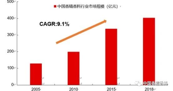 圖4 我國(guó)香精香料市場(chǎng)規(guī)模快速增長(zhǎng)