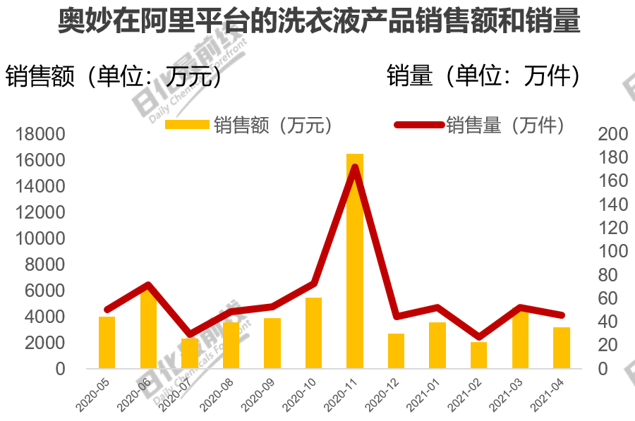 總體來說,2021年洗衣液品類線上銷售比較穩(wěn)定且保持較高速的增長。