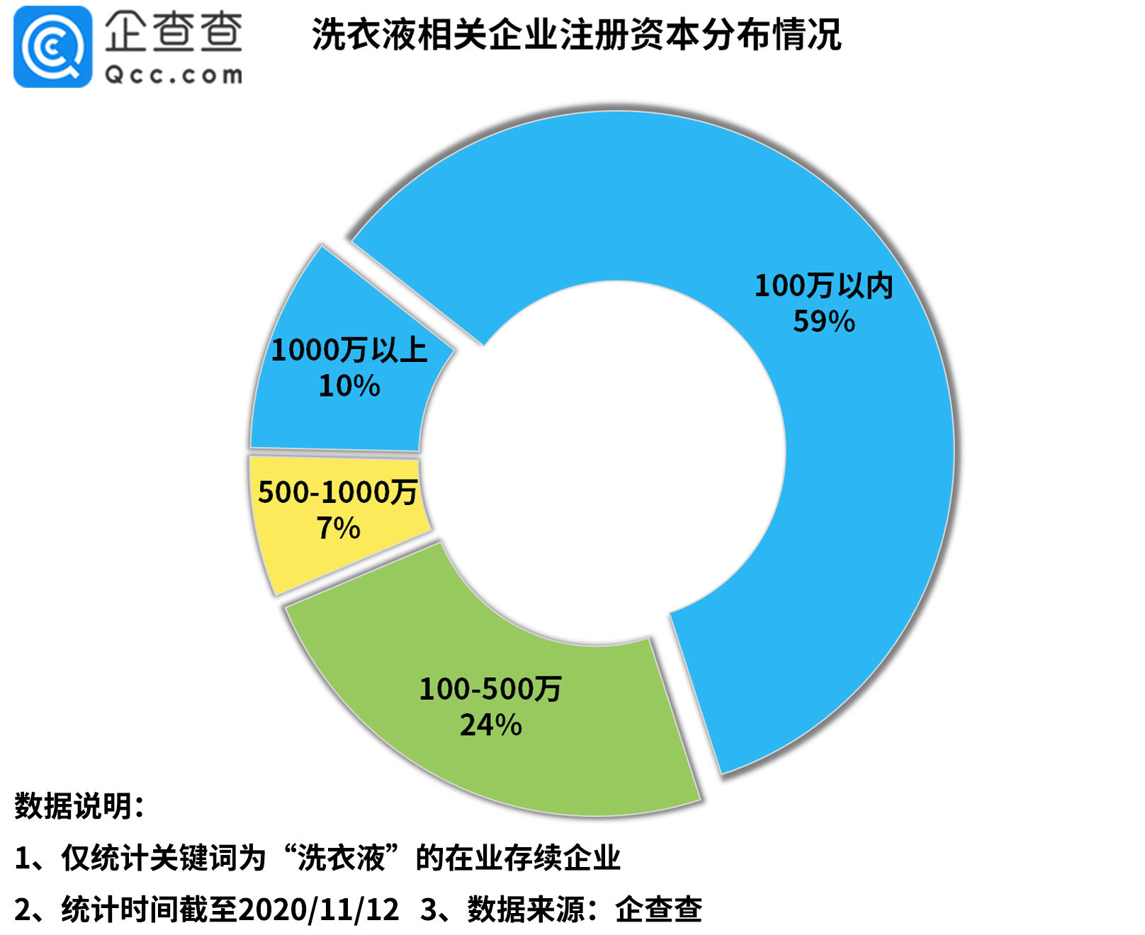 從注冊資本來看,企查查數(shù)據(jù)顯示,我國超8成的洗衣液相關(guān)企業(yè)注冊資本都集中在500萬以內(nèi),其中59%的企業(yè)注冊資本在100萬以內(nèi),24%的企業(yè)注冊資本在100-500萬這個(gè)區(qū)間,而注冊資本在1000萬以上的則占總量的10%。