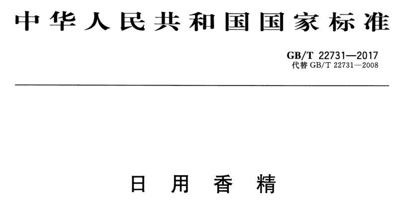 國(guó)家質(zhì)量監(jiān)督檢驗(yàn)檢疫總局和國(guó)家標(biāo)準(zhǔn)化管理委員會(huì)發(fā)布的GB/T22731-2017《日用香精》標(biāo)準(zhǔn)。該推薦性標(biāo)準(zhǔn)規(guī)定了日用香精的定義、要求、試驗(yàn)方法、檢驗(yàn)規(guī)則、標(biāo)志、包裝、運(yùn)輸、貯存、保質(zhì)期,還規(guī)定了應(yīng)用日用香精的11類產(chǎn)品,99種日用香精中限用的香料及其在11類加香產(chǎn)品中的最高限量和82種日用香精中的禁用物質(zhì)。