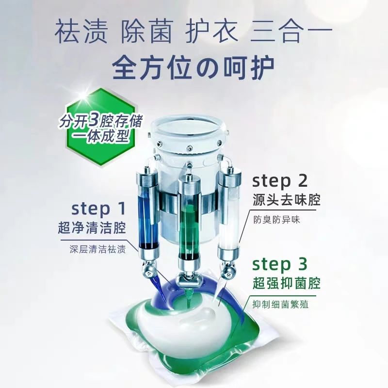王珍明所說的“多腔洗衣凝珠”,如今在市場上出現(xiàn)了不少。事實上,從單腔(只注入清潔功能的洗衣液)到多腔(加入了柔順劑、消毒液或香氛等不同成分),正是迎合了后疫情時代消費者對于清潔產(chǎn)品更多元細(xì)分的需求。