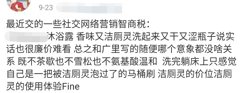 幸運(yùn)的是產(chǎn)品不貴,也就潔廁靈的價格;悲催的是產(chǎn)品不貴,覺得自己更像真用了一瓶潔廁靈洗澡。
